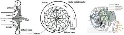 • Konstruksi utama terdiri dari: impeller (single atau multistage), casing volute, Shaft, bearing, dan seal.
