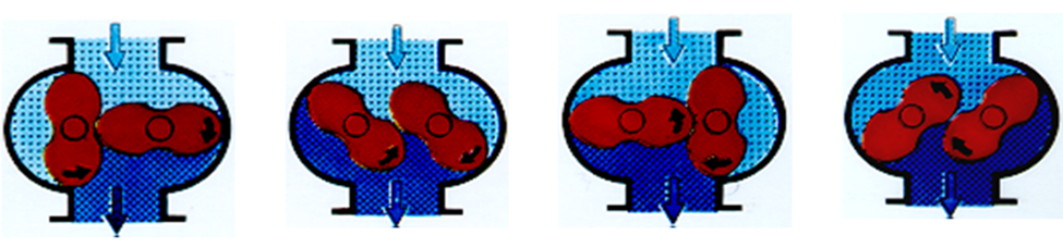 1. Udara masuk melalui sisi inlet ketika ruang di antara lobe dan casing terbuka.